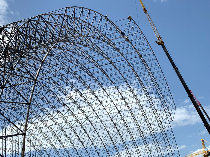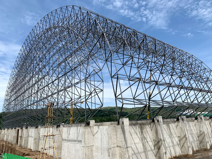 (2)网架加工前应对现场尺寸进行复测,确认无误后方可进行加工、安装;网架制作、运输、安装应遵守《空间网格结构技术规程》JGJ7-2010、《钢网架介休螺栓球节点》JG/T 10-2009、《钢网架介休螺栓球节点用高强度螺栓》 GB/T 16939-2016、《介休钢结构介休工程介休施工规范》 GB50755-2012、《介休钢结构介休工程介休施工质量验收标准》 GB50205-2020。